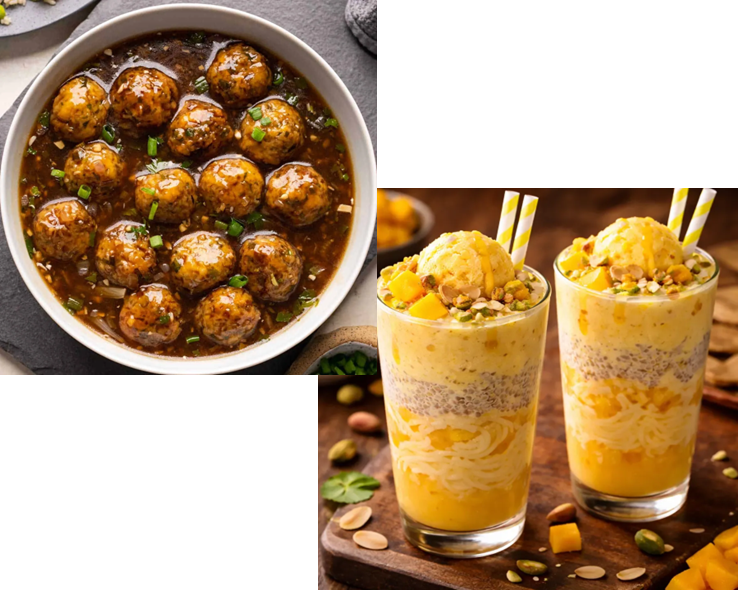Indulge in our delightful desserts, including Kesar Pista Kulfi and Chocolate Almond Kulfi, offering the perfect sweet finish to your meal. Every dish is prepared with premium ingredients and authentic spices to give you a true taste of India.