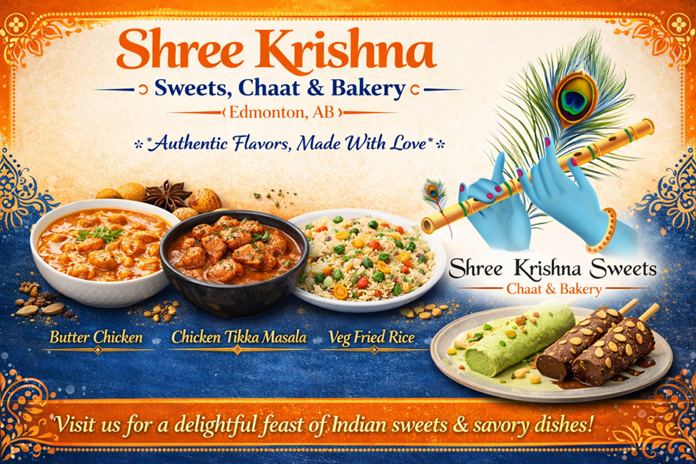 At Shree Krishna Sweets, Chaat & Bakery in Edmonton, we celebrate the true essence of Indian cuisine by blending time-honored recipes with a touch of modern taste. Every dish is thoughtfully prepared using authentic spices, fresh ingredients, and traditional cooking techniques that bring out rich, bold, and comforting flavours in every bite.